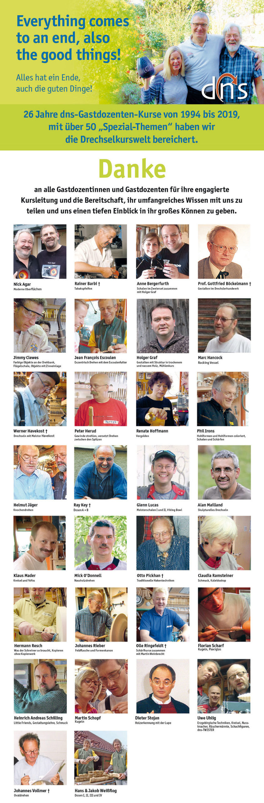 Mit insgesamt 50 verschiedenen Kursthemen, 30 GastdozentenInnen und über 9.000 Kursbuchungen haben wir in den vergangenen drei Jahrzehnten drechseltechnisch so einiges bewegt.