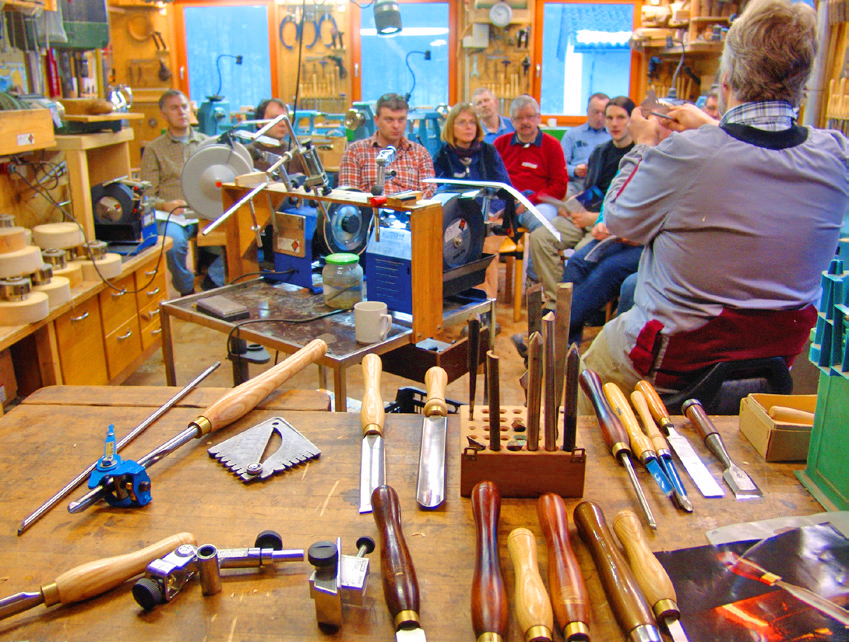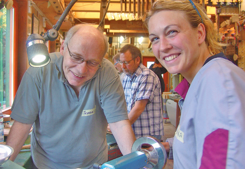 Der Kurs „Formenkanon“ mit Johannes Rieber, Schachfiguren mit Uwe Uhlig, Gewindestrählen und „versetzt drehen“ mit Petter Herud, und „Exzentrisch drehen“ mit Jean Francois Escoulen.
