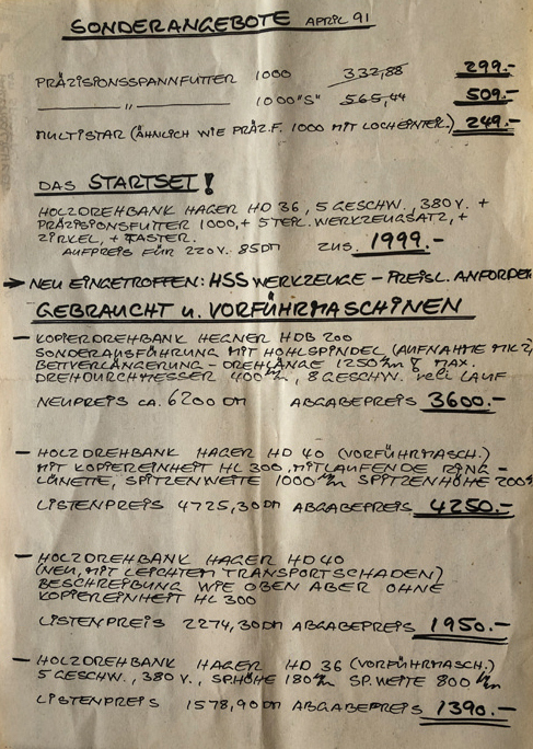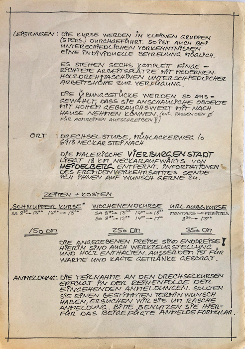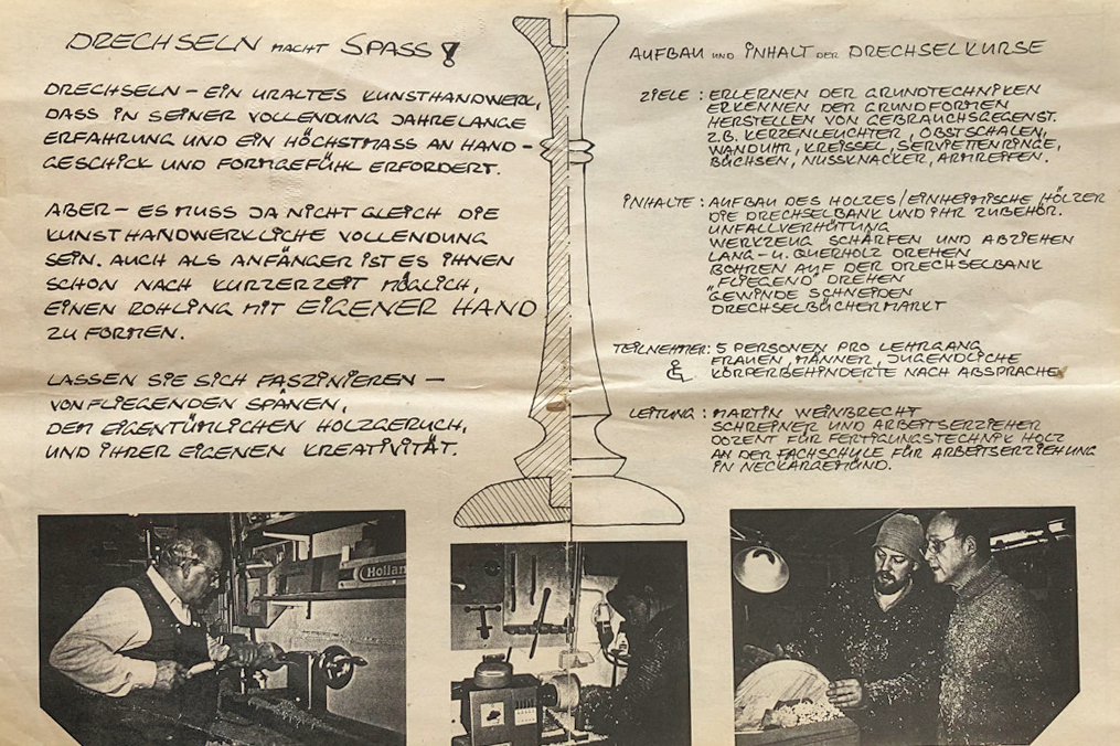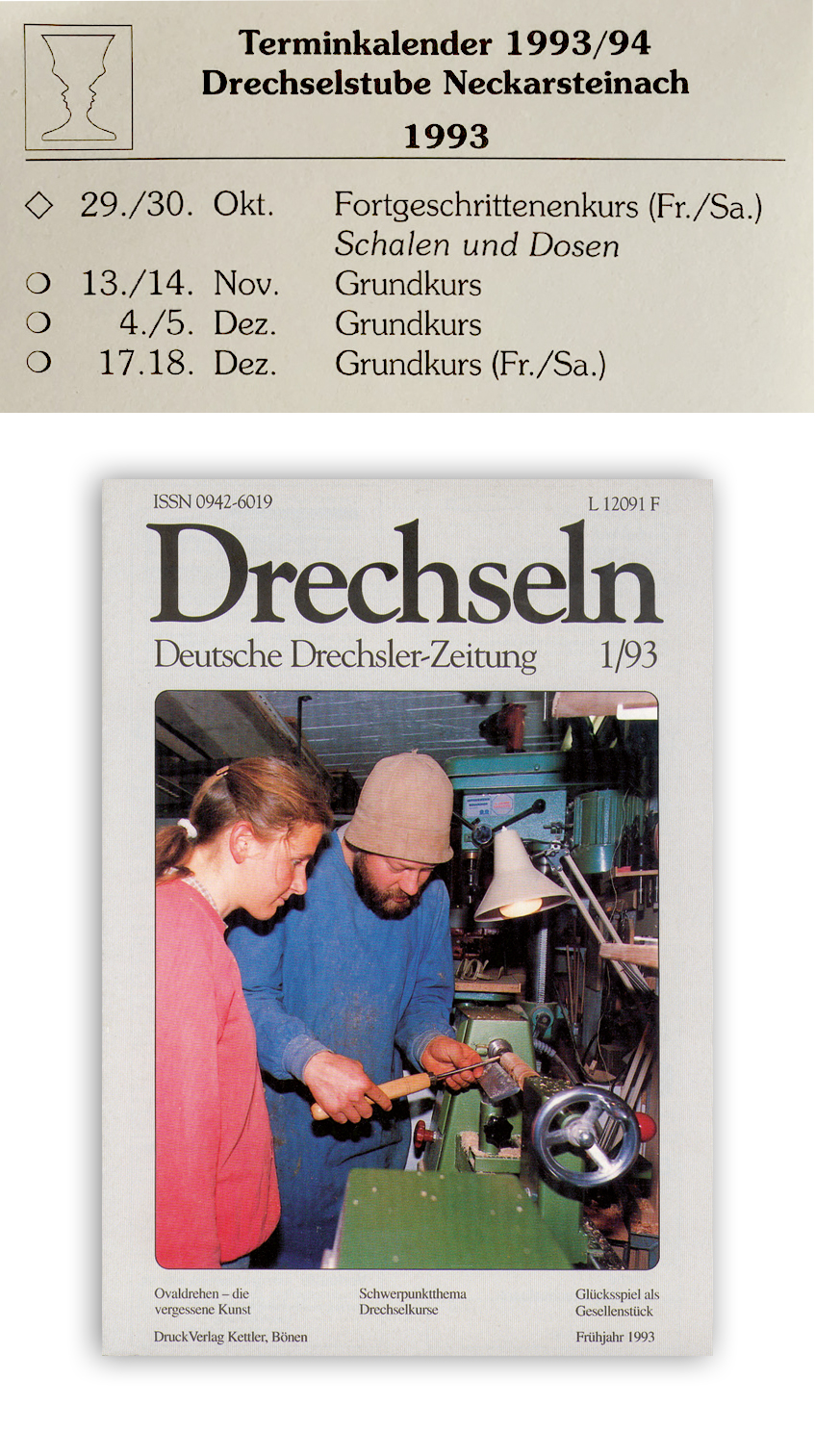 Im Dezember 1990 gründen wir die Drechselstube und rühren die Werbetrommel für unsere Drechselkurse.