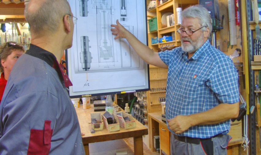 Wir dürfen voller Stolz Altmeister Otto Pickhan in Neckarsteinach begrüßen. Mit klassischen Hakendrehwerkzeugen und modernen HSS-Werkzeugen gibt er seinen Erfahrungsschatz an unsere KursteilnehmerInnen weiter.