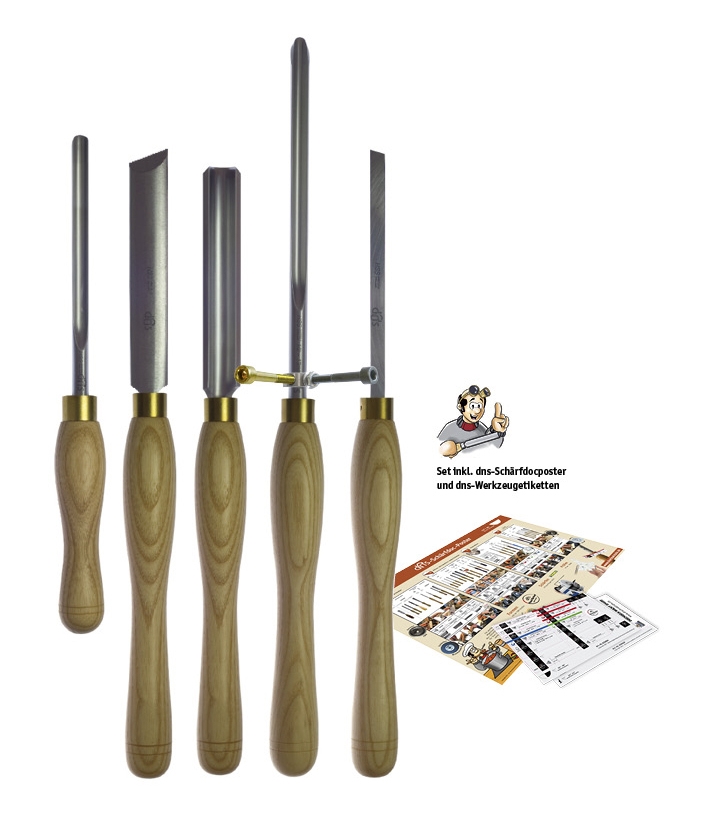 vom Einstiegssatz mit 5 Werkzeugen (auch für kleine Tischdrechselbänke)