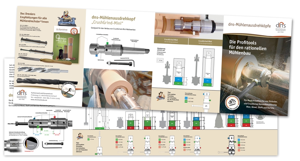 die Maße von allen Mahlwerken auf einem Folder