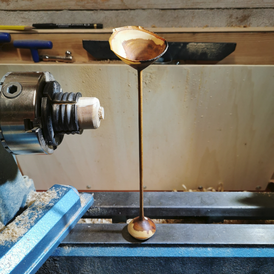 – danach wurde das Werkstück mit einem Abstecher von der Drechselbank genommen