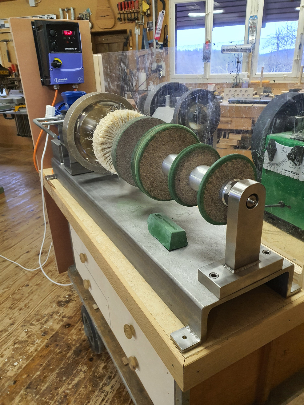 Heute ist das ganz anders, besonders wenn man die neue CBN Schleifscheibe von dns besitzt. Sie hat einen Durchmesser von 250 mm und und schleift am Umfang und seitlich.