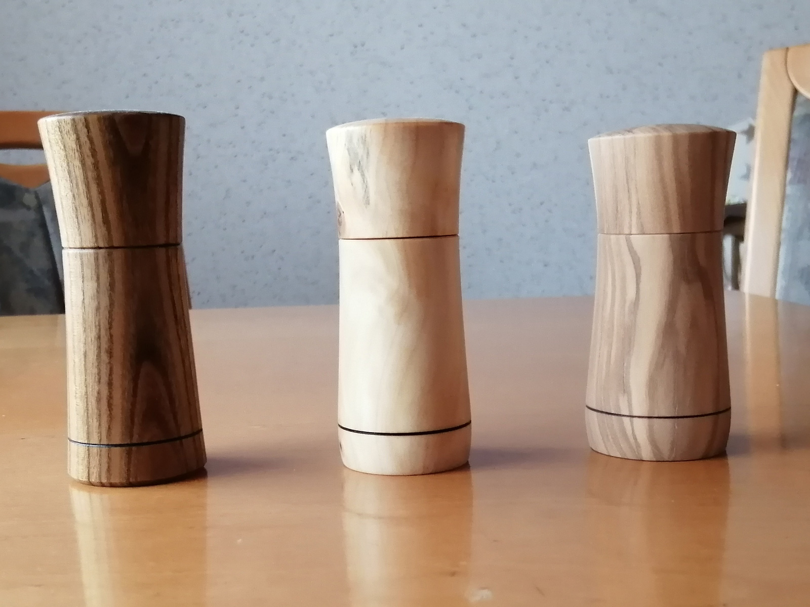 Nussbaum für Pfeffer und Ahorn für Salz, diese 20 Sets gehen ins Morgensternhaus nach Fulda.