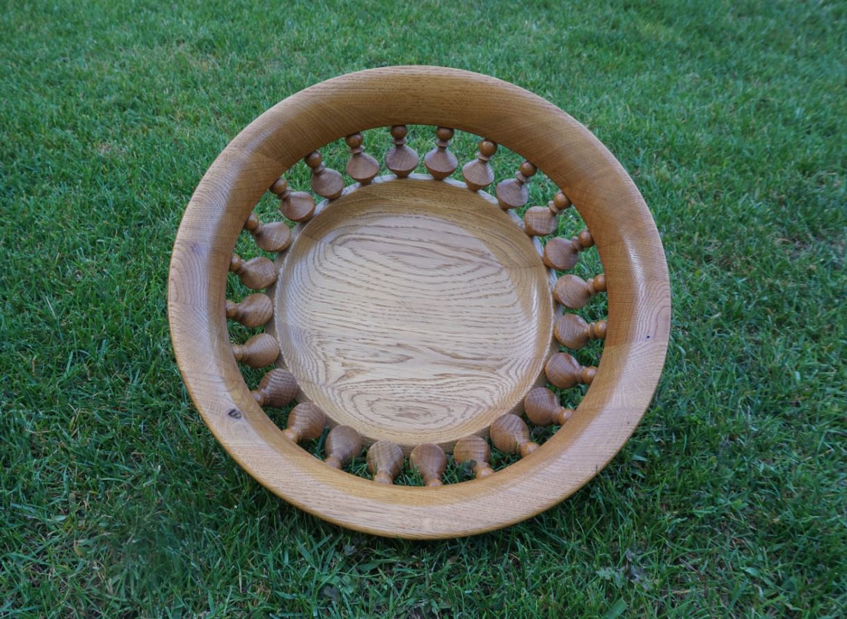 Später sah ich die Schale in Selbst ist der Mann mit außermittigen Stäben. Dann hab ich alle Teile für diese Schale gedrechselt.