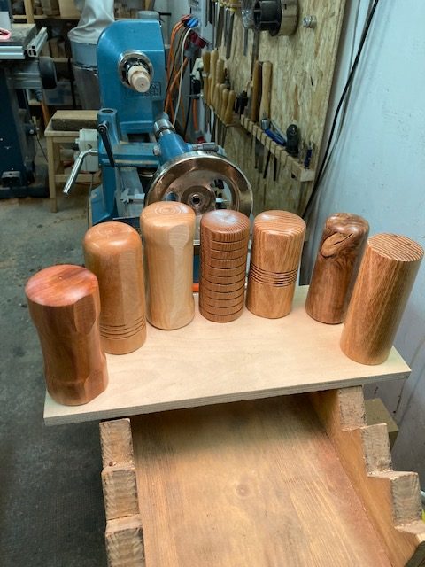 Und vorher um warm zu werden noch ein Pärchen Crush Grind Mini 150 aus Eiche und Nussbaum gedrechselt.