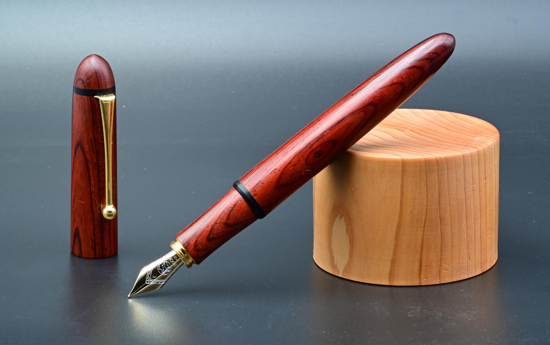 hier sind ein paar Füller meiner jüngsten Kollektion (von oben: Cocobolo, Eibe, Wüsteneisenholz, Zirikote).