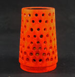 Ich habe aus Kirschbaum eine Vase gedrechselt. Die Vase hat die technische Form eines Rotations-Hyperboloid und ist durch filigrane Nuten aufgelockert.