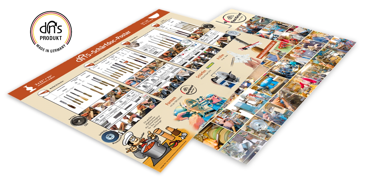 40 Jahre Schärferfahrung, 30 Jahre Drechselkurse mit ca. 100.000 Werkzeuganschliffen, 20 Jahre Schärfhilfenentwicklung: EIN POSTER!