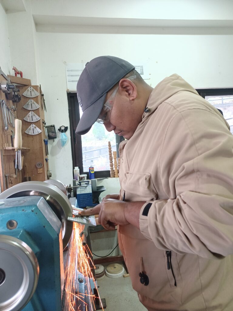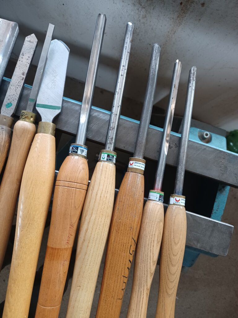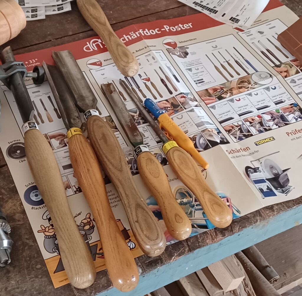 Wir haben zwei Wochen intensiv Werkzeuge geformt und geschärft. Alles mit Etiketten versehen und farblich markiert. So daß es in Zukunft keine stumpfen Werkzeuge mehr geben wird.