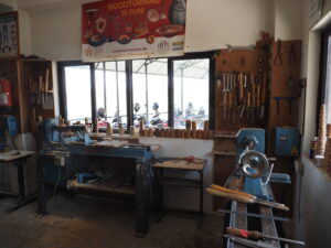 Da die Schreinerei direkt neben der Drechselwerkstatt liegt, war meine erste Empfehlung keine Drechselbank in die Schreinerei zu stellen. Das spart zum einen Platz in der Schreinerei und zum anderen wird die Drechselausrüstung nicht zerpflückt.