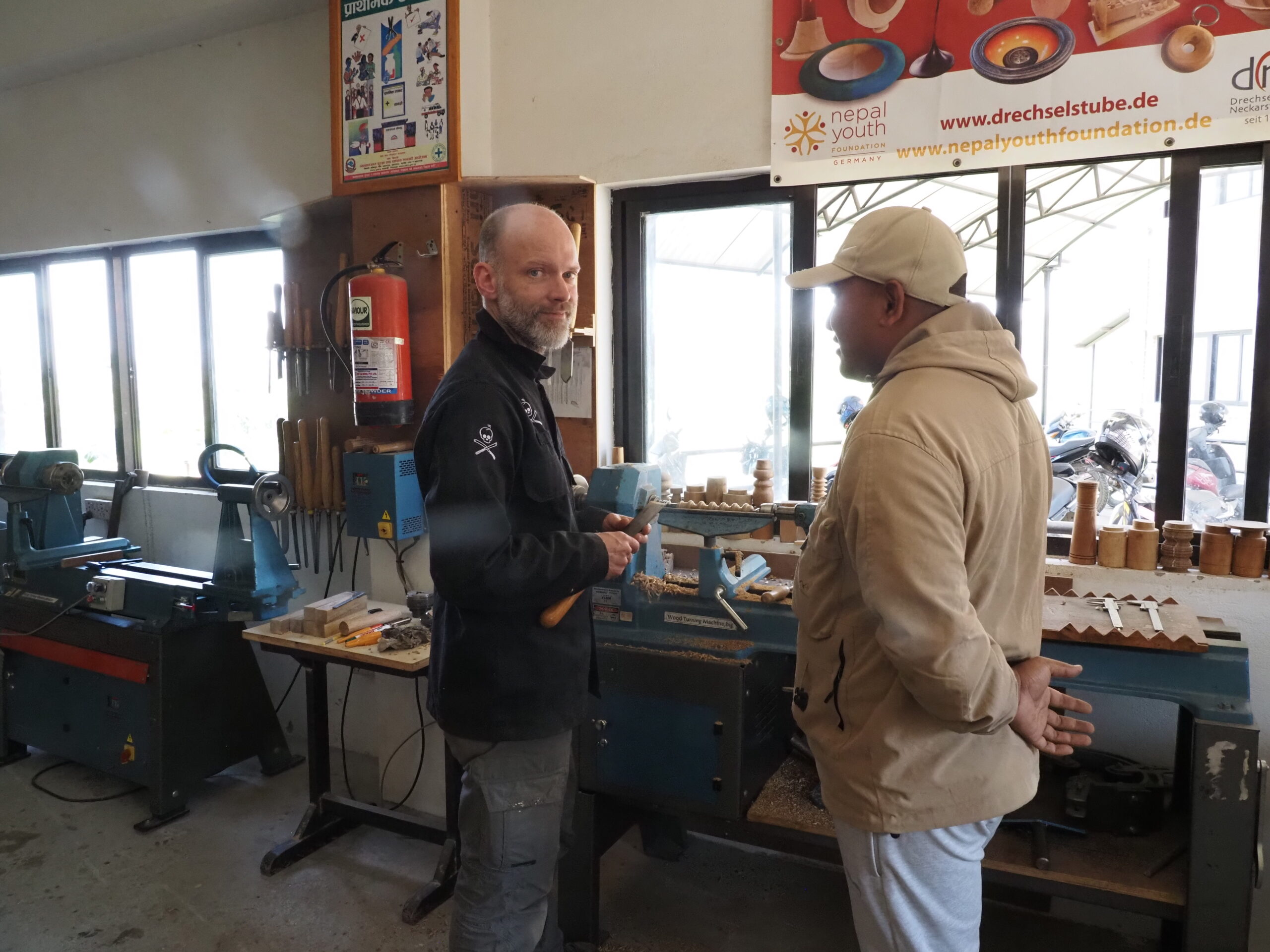 Der Vortrag von Som Paneru hat meine Frau Anke und mich sehr berührt, das wir uns darüber einig waren, wir möchten die Arbeit der NYF unterstützen! Mit unserem ersten Unterstützungsprojekt „Build up the Worshop“ konnten wir im im Mai 2016, die Ausbildungswerkstätten der NYF in Olgapuri/Nepal mit einer professionellen Drechselwerkstatt ausrüsten.Dank zahlreicher Spenden und einem Team freiwilliger HelferInnen war nicht nur ein sicherer Transport nach Nepal möglich, sondern auch die Vermittlung von Drechsel-Knowhow vor Ort.