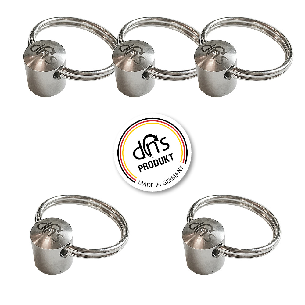 5 St. Oberteil für dns-Flaschenöffner und dns-Schlüsselanhänger (Duo) mit Schlüsselring. (Edelstahl Ø 11 x 13 mm, M5 Innengewinde)