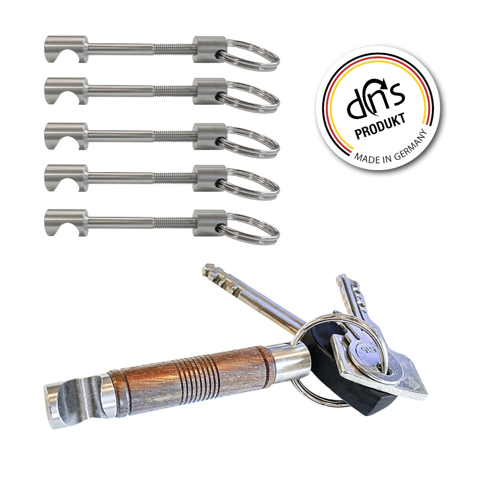 dns-Flaschenöffner, geeignet zum Verkleiden mit Holz, Horn, Bein und anderen Werkstoffen.